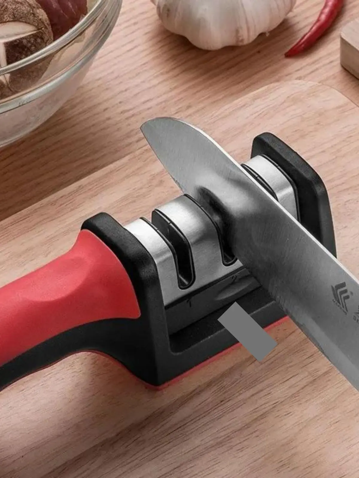 Un cuchillo desafilado no solo corta mal, también es más peligroso. Con el Afilador 3 en 1, recuperás el filo de tus cuchillos fácilmente y en pocos pasos, logrando cortes más precisos y seguros.